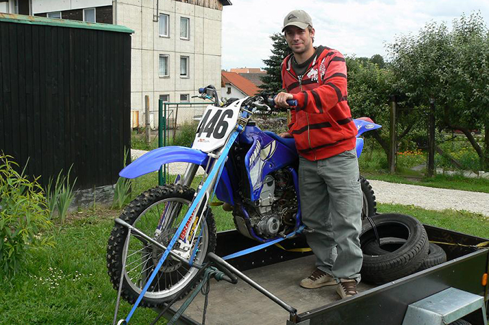 Hned první víkend jsme vyrazili na projížďku. Honza V. nám chtěl ukázat jak ta jeho Yamaha valí, ale po pár kilometrech nám ukázal jak se válí úplně vyčerpaný ve vodní lázni. (když se potřebuje člověk zchladit, tak i kaluž pomůže). Další, kdo si pořídil nový stroj, byl Honza Š., který ke svému XR-ku pořídil ještě CRF 450. Zřejmě ho Honda očarovala - čemuž rozumím. Tentokrát naše cesta směřovala na motokrosovou dráhu do Kaplice. Účast byla hodně bídná, ale ti, co jeli, si to pořádně užívali.