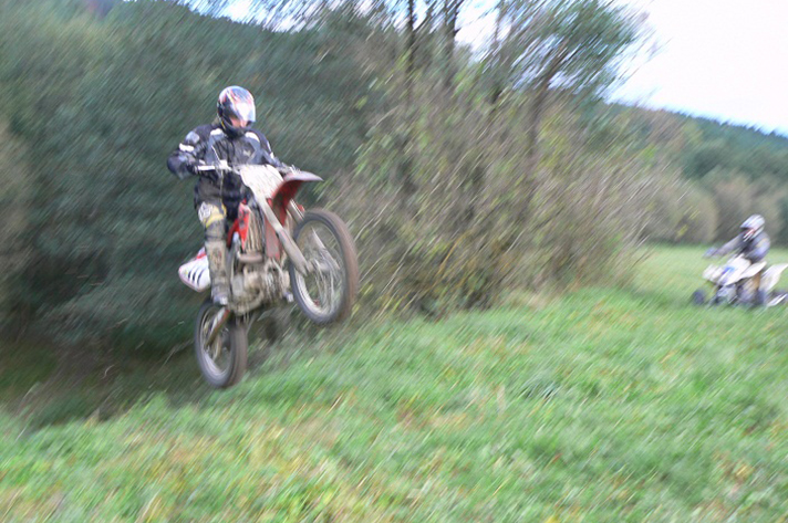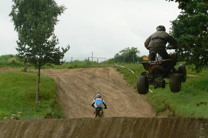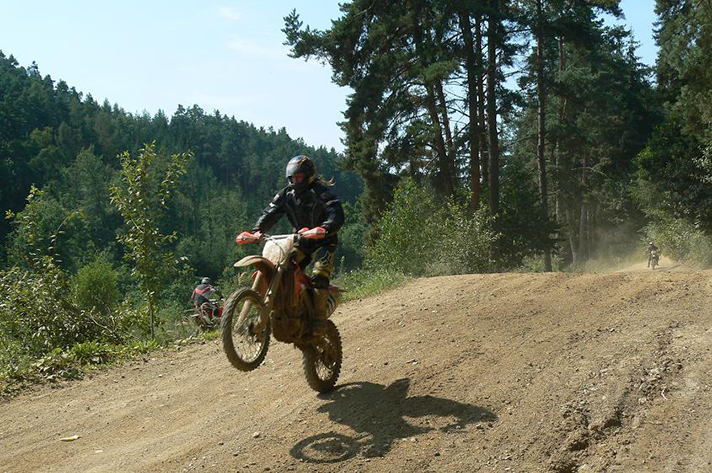 Po úplně směšném zavržení našeho návrhu na obnovu motokrosové trati v Boleticích (prý bychom znečišťovali přírodu víc než je nutné, což s ohledem na to, že trať by se nacházela ve vojenském prostoru rozbombardovaném z vojenských cvičení, kdy několikrát za den jsou vojáci schopní při cvičení zapálit louku zní hodně směšně :) jsme se rozhodli, že ?ty kluky zelený? trochu podráždíme a vydali jsme se na projížďku do vojenského prostoru. Jízdu jsme si krásně užili. Poté jsme se vydali ještě trochu pokrosit v okolí Chvalšin a objevili jsme krásný výjezd a jeden hodně dlouhej skok a tak jsme se vyřádili.