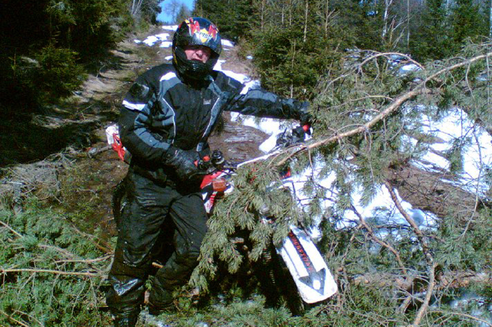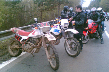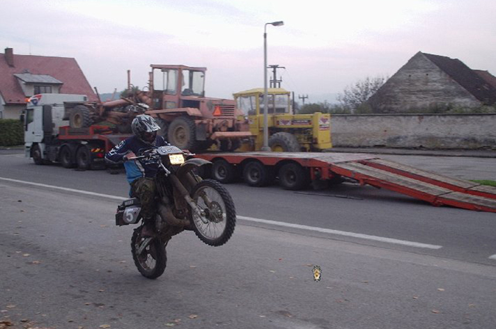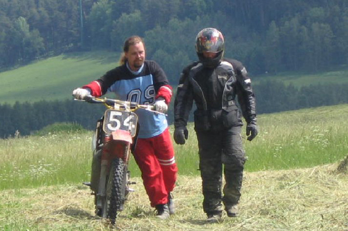 A tímto se náš klub rozrostl o dalšího motorkáře, protože jeho DR putovalo dalšímu místnímu nadšenci a to Liborovi R., který k nám svými pády rychle zapadnul. I já jsem se zanedlouho začal koukat po novém stroji a tak jsem zhruba po měsíci přivezl Husgvarnu TE 610 a moje stará holka putovala opět do rukou nového motorkáře od nás a to Tomášovi H. Dále mezi námi byli také kluci, kteří měli motorky silniční a po pár vyjížďkách s námi vyměnili svůj stroj za teréní. Prvním takovým případem byl Milan R., který svojí Gileru vyměnil za Husgvarnu TE 410. Ještě nesmím zapomenout na Honzu K., který jezdil na Hondě CR 250, jestli se dá v tomto případe říct jezdil - spíše stál, protože buď ho zastavil nějaký strom nebo to mel rozbitý. A skončím s Romanem R., který vlastnil Yamahu TTR 600 a dělal nám všem hlavního mechanika. Jo a Pavel už to XL-ko vyměnil za Suzuki DR 600. Musím přiznat, že jsme vždy také nedojeli a čekal nás nějaký ten odtah...